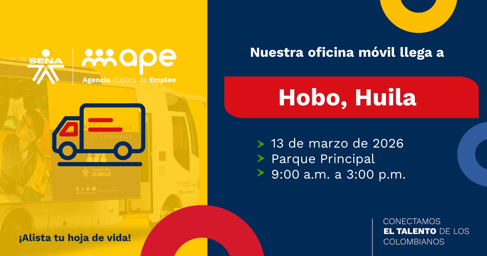 Una oficina móvil de la Agencia Pública de Empleo del SENA llega a Hobo, Huila.