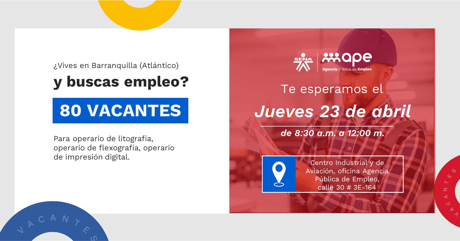 80 vacantes para operario de litografía, operario de flexografía, operario de impresión digital.